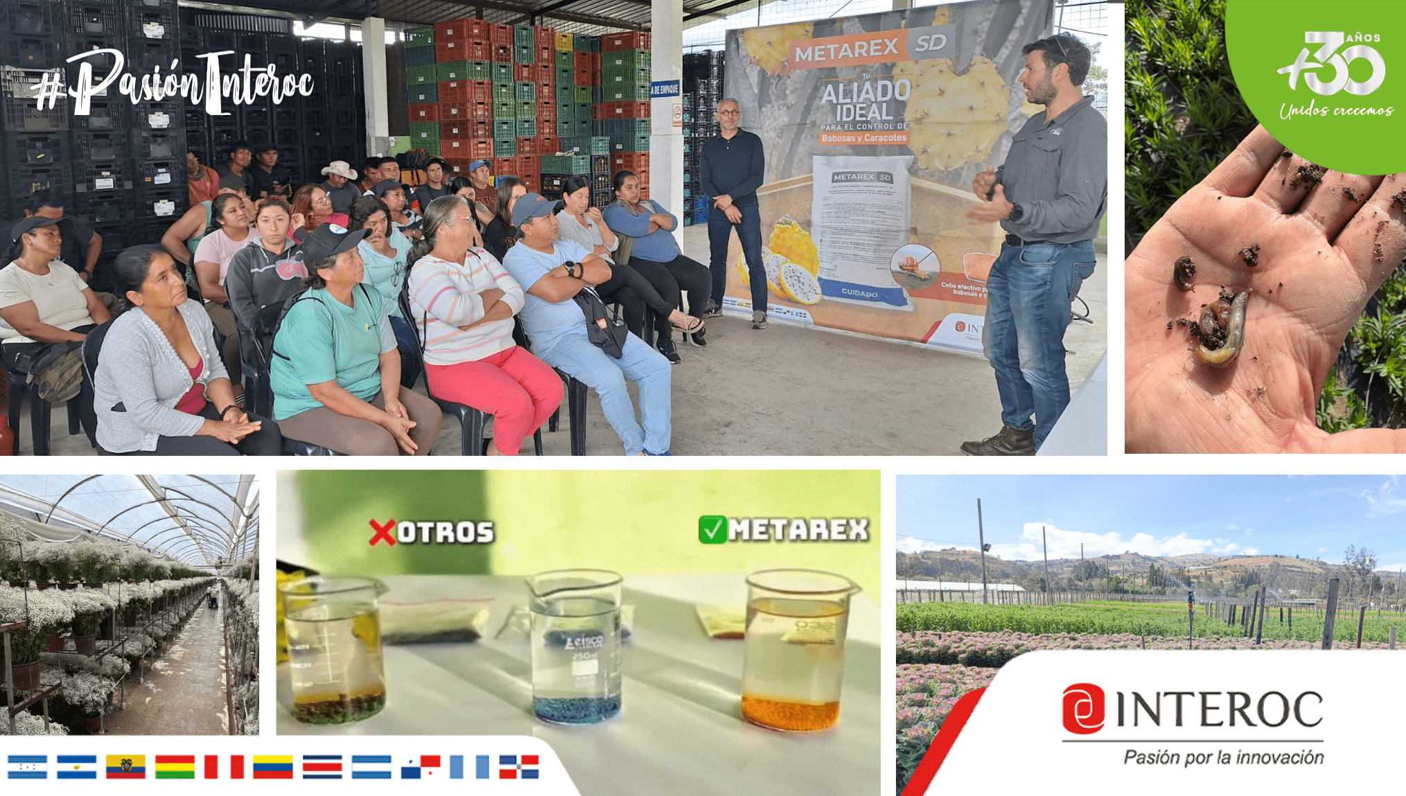 Durante su visita, en compañía del equipo técnico de INTEROC, se desarrolló un día de campo en la finca Carcelén junto con agricultores. Los expertos compartieron su amplia experiencia en formulación de soluciones para el control de moluscos, problemática que afecta tanto la calidad del fruto como también al sistema radicular de la planta debido a la presencia de caracoles.